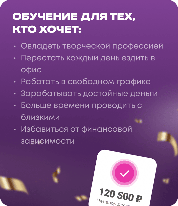 После курса вы будете готовы предлагать свои услуги как фрилансер, либо устроитесь в компанию, создавая видео для различных клиентов, что откроет новые горизонты для заработка